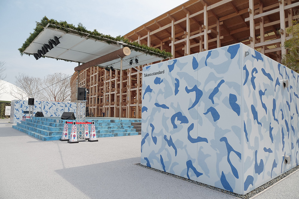会場内の休憩所・トイレなどの20施設をコンペで勝ち上がった若手建築家が設計する事になったのですが、この若手建築家達にホーロー建材のプレゼンテーションをしたところポップアップステージとトイレ2ヶ所に採用されました。