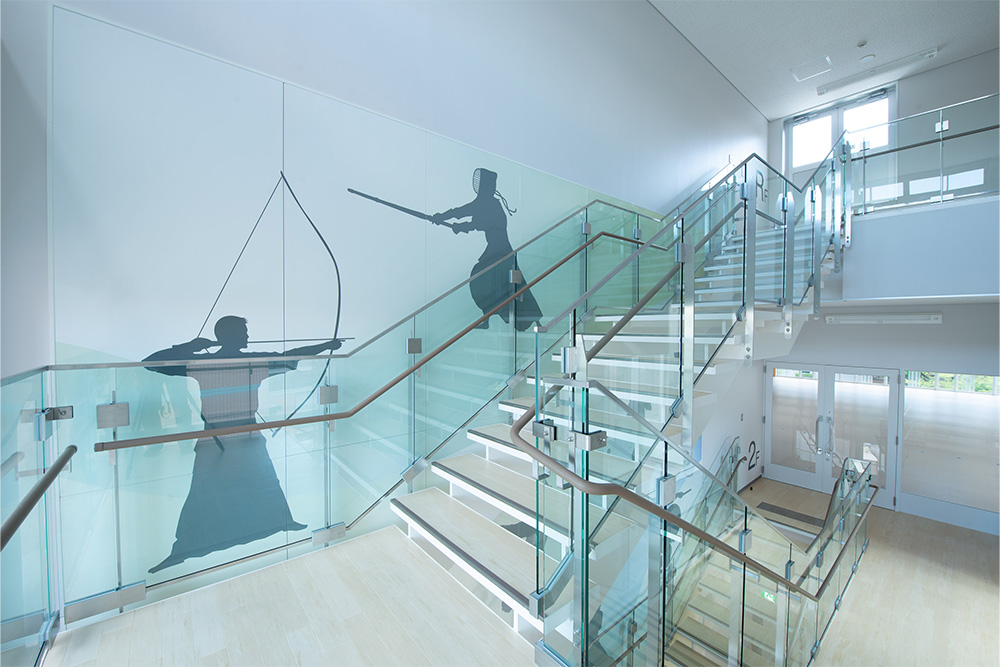 徳島文理大学吹き抜けの階段壁面