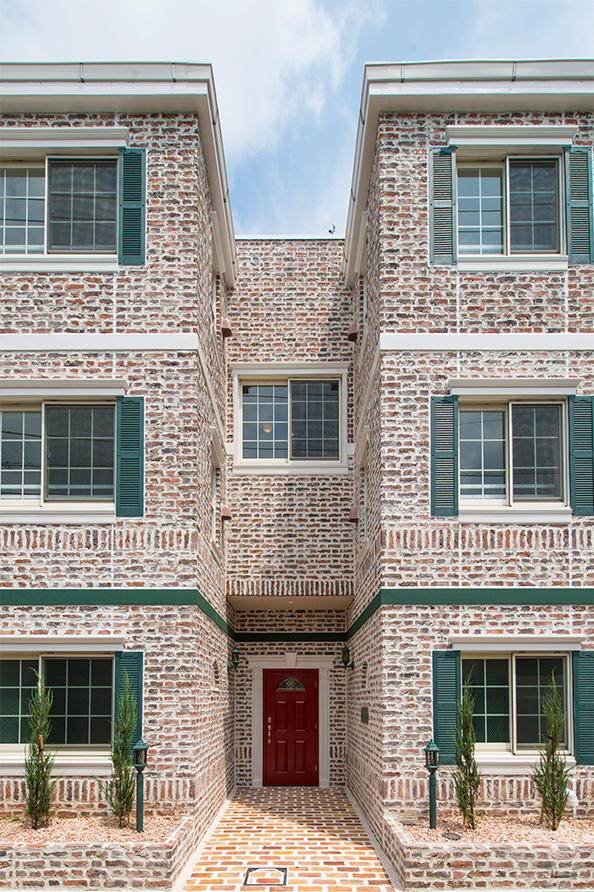イギリスの古レンガをモチーフとして作られたブリックタイルCAN’BRICK「マンチェスター(MC)」を外壁に使用したマンションファサード。