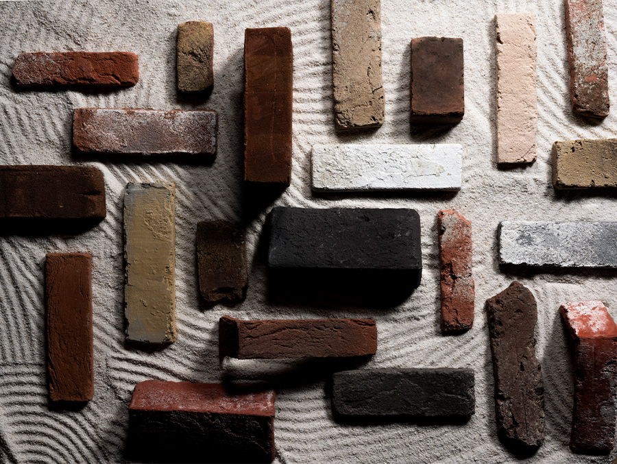 私たちが⽬指してきたのは、単にレンガ調のタイルを提供することではありません。どのような貼り⽅が最も美しく⾒えるのか、開⼝部はどう納めるべきか、施⼯後どのように表情が育っていくのか── 。創業時から、素材だけでなく「空間の仕上げ⽅」まで含めた提案型のメーカーとして、欧⽶の実際の積み⽅や経年変化の魅せ⽅を研究し続けてきました。 現在では、ブリックだけでも13シリーズ40品番、⽬地材も15⾊に拡⼤し、本物志向のユーザーや設計者の細かな要望に応える体制を整えています。私たちが〝本物に忠実であること〟にこだわるのは、それが時間やトレンドが変わっても空間の価値を損なわず、⻑く愛され続ける美しさを宿すからです。