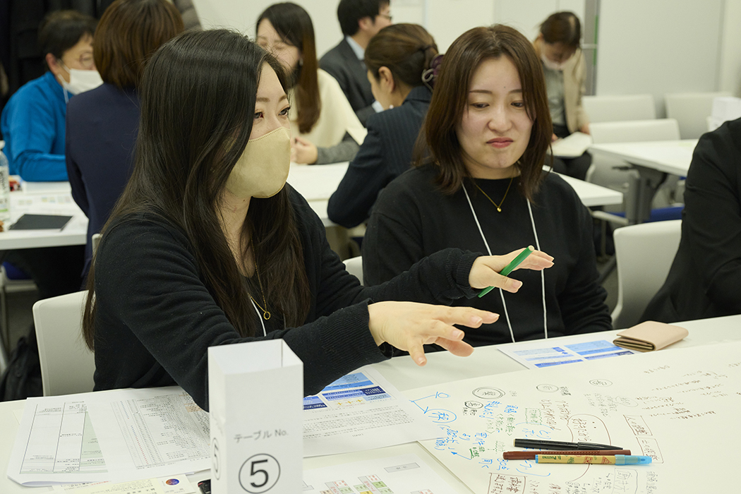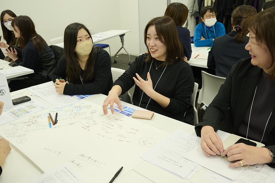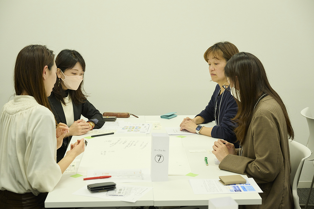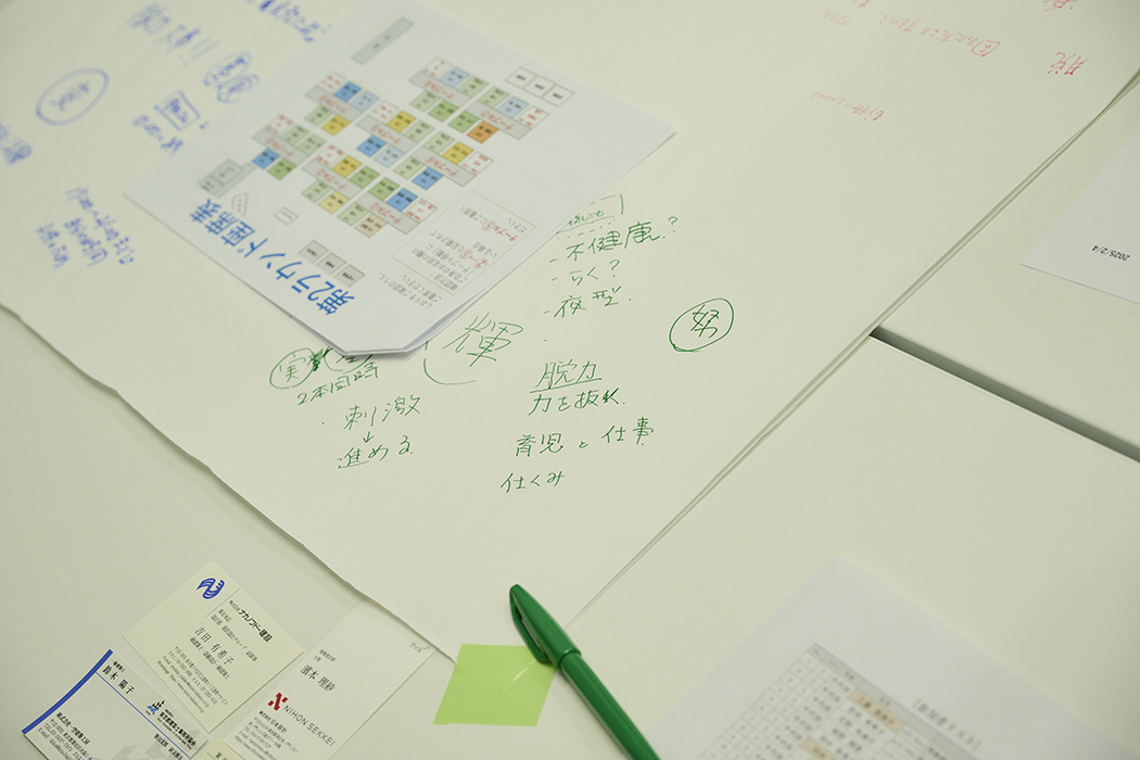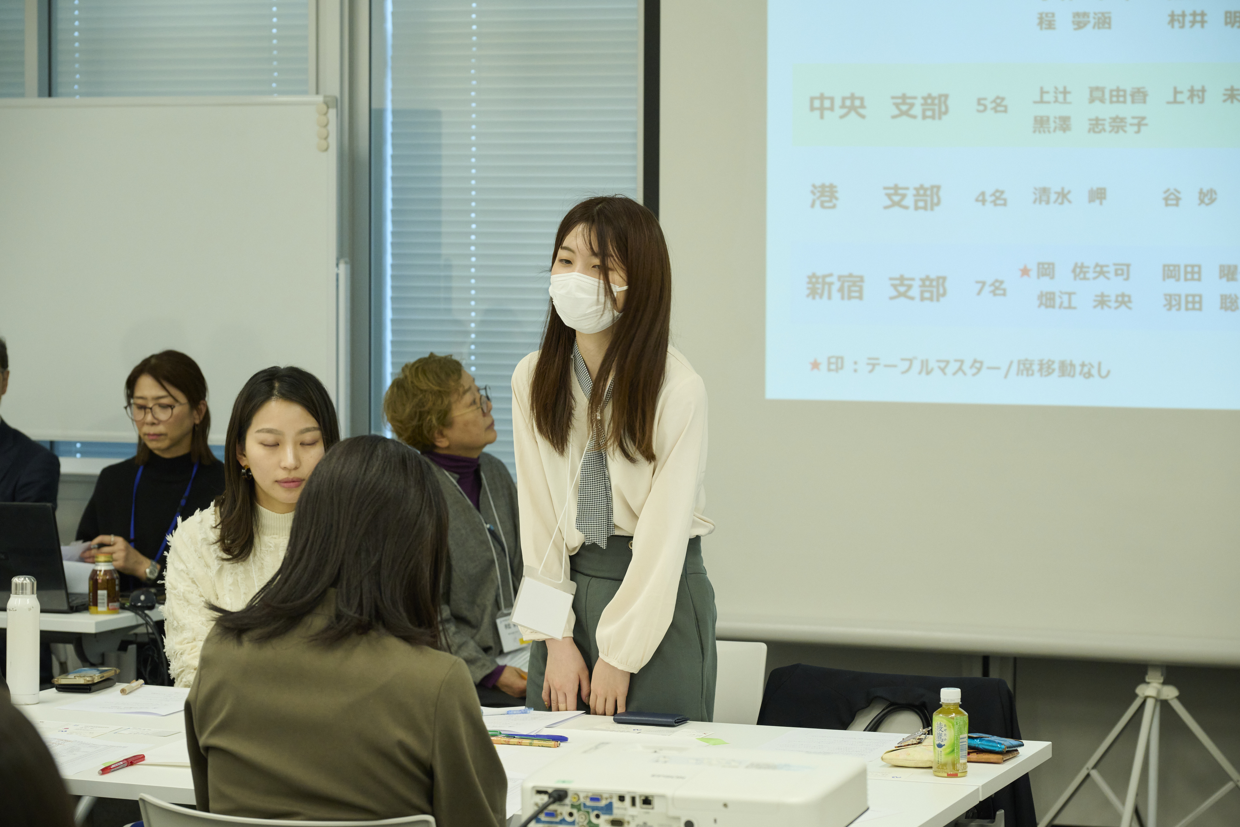 今回は「個人と事務所が共に成長できる、フラットで自由に発言できる職場の雰囲気づくり」をテーマに自身の課題や悩みなど、自由に発言するワールドカフェ方式の懇談会が開催されました。