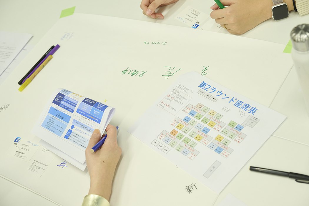 一人が3回の席移動で、多数の意見が短時間で得られる形式です。