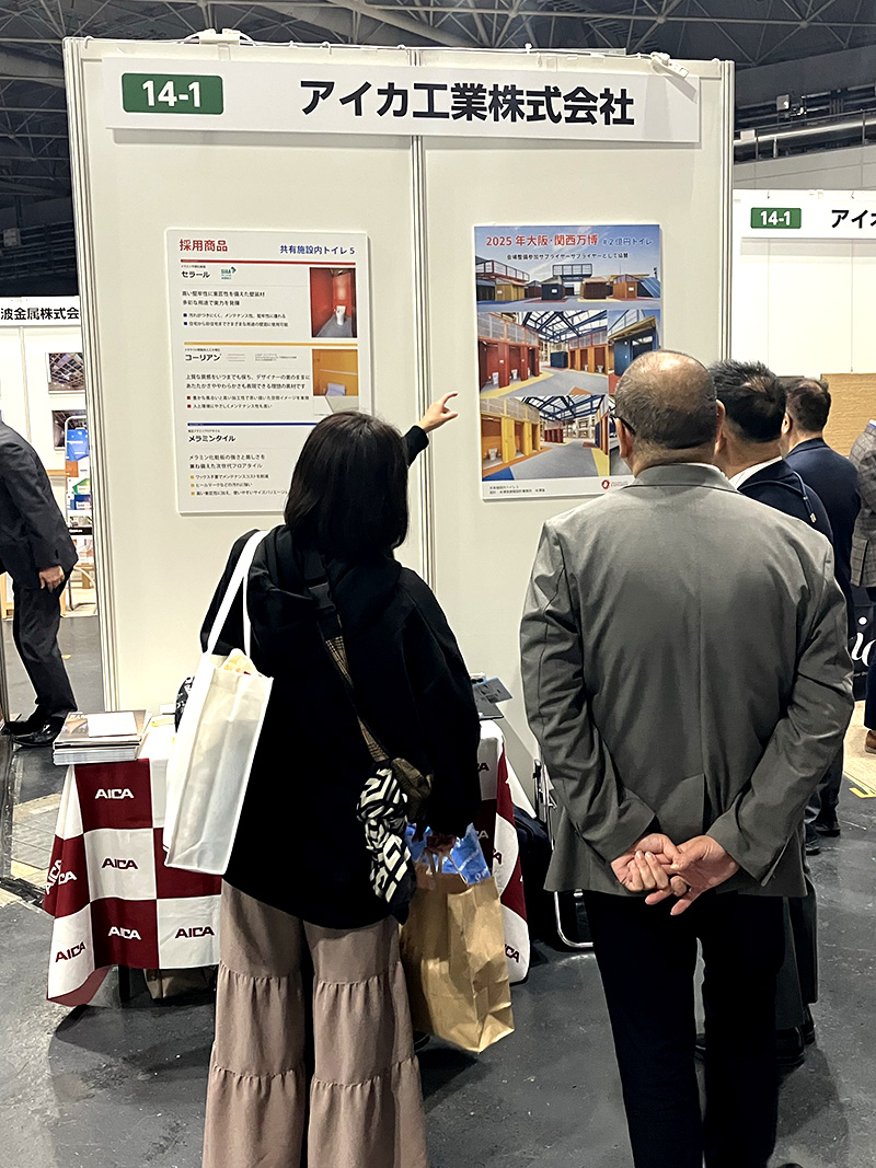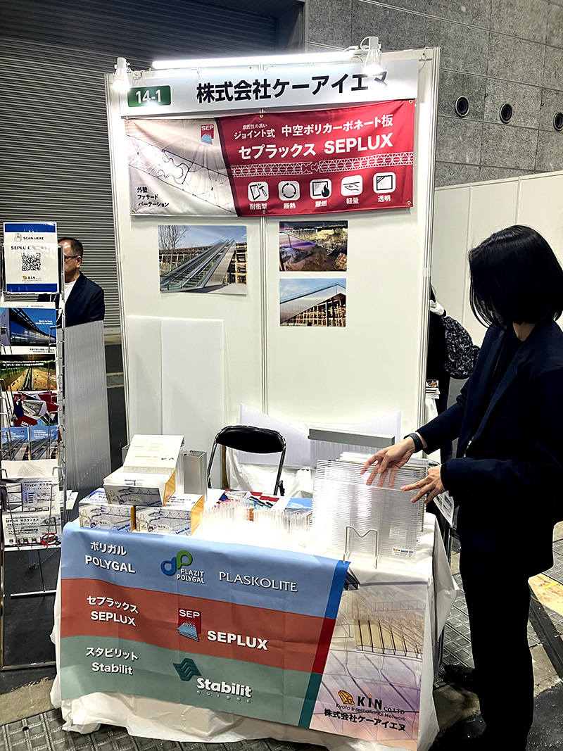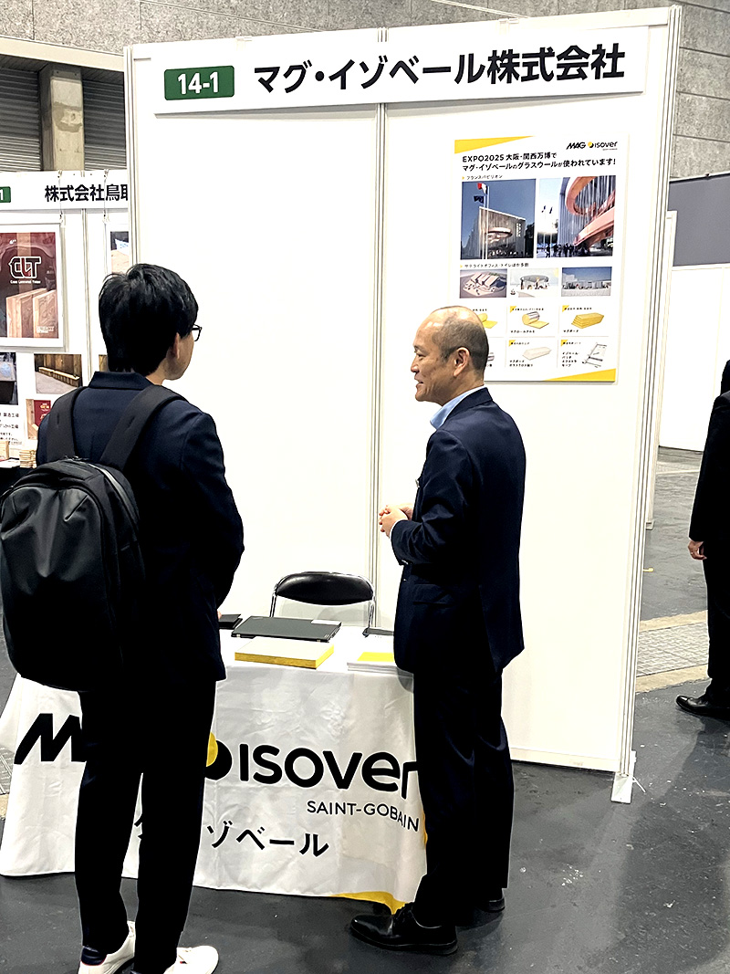 大阪・関西万博のエスカレーター外装として採用されたという実績を、実際に建築・建材業界の方々に直接お伝えできる貴重な機会となりました。
