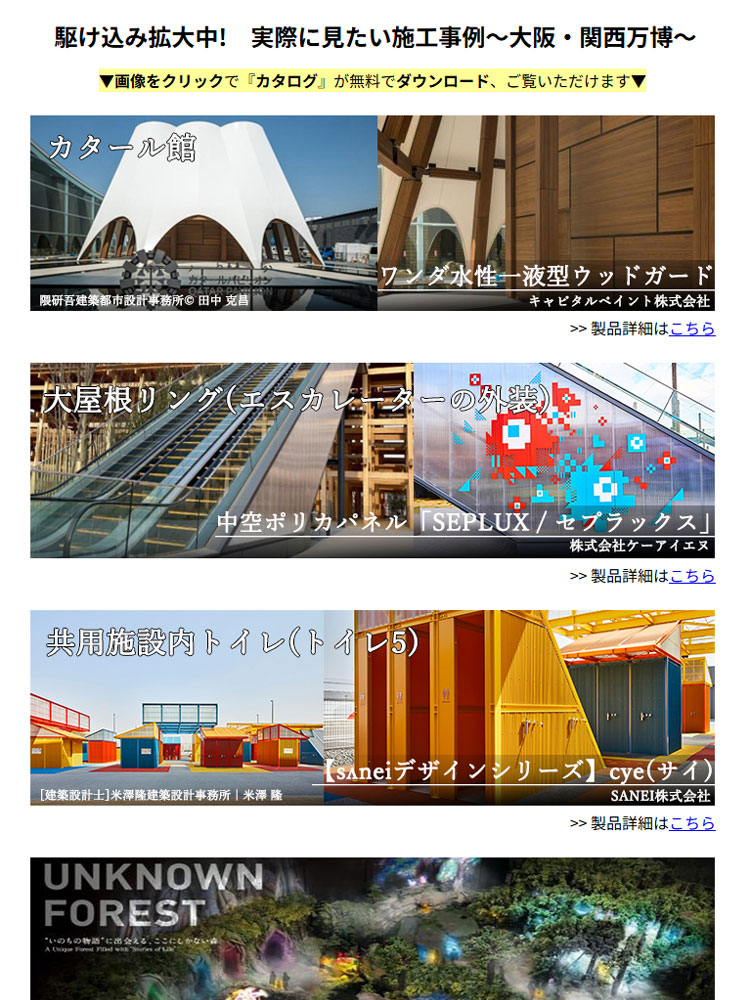 メルマガで紹介した万博採用建材メーカー様に対し、展示会への出展を呼びかけました。