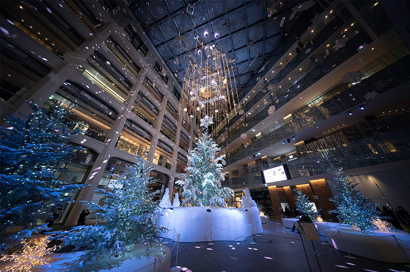 日本の自然の大切さを後世に繋げる「KITTEの森~自然からの贈り物」をテーマにし、終了後はツリーをベンチとして再利用されている。(フォーハーツ株式会社)