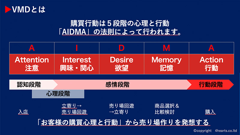 展示会は、広いホールの中に大勢の人がいますよね。その中で、どうやって自社のブースに人を引き込むか。遠距離・中距離・近距離からの見え方を計算し、視覚効果と顧客心理を組み合わせて「あっ」と思わせて、入りたくなる導線を作る。その作り方が、僕のVMDと全く一緒なんです。だから、竹村さんのブースにはたくさんの人が集まる。