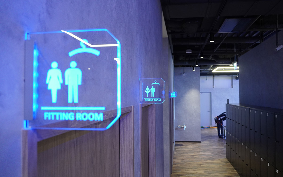 特にエントランスにはモニターを設置して全体の空き状況を一覧表示し、オフィススペースにはLEDサインを取り付けて待ち時間短縮を図っています。