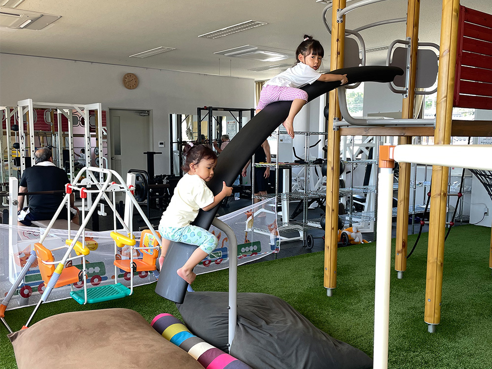 こだわりの遊具は、アネビーの協力のもと制作したリンクフィットオリジナル。隣には大人向けのジムも併設されている。