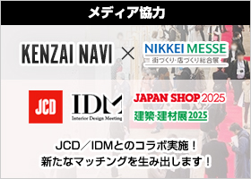 インテリア業界24団体が連携し発足したIDM(Interior Design Meeting)が伝統的なものから最新のものまで、様々な素材・アイデア・商品を揃え、マテリアル展示とスペース展示で構成されたブースとなっている。