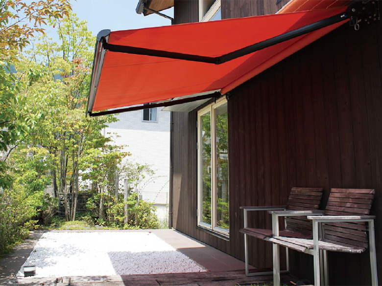日差しの強くなる季節、屋外でも快適に過ごせるオーニング。