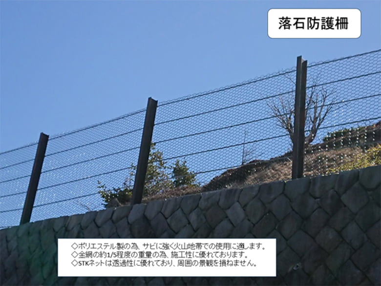 高耐久の「STKネット」は、養殖生簀金網に代わる、サビないポリエステル製製のきっ甲形ネット。高い性能や軽量性が注目され、土木・建築用資材としても広く活用されています。