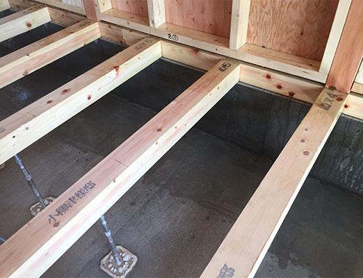 木材に塗布後に表面から内部に浸透、湿度と時間経過により拡散し、建物の構造体である木材を守ります。