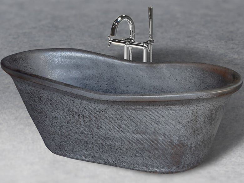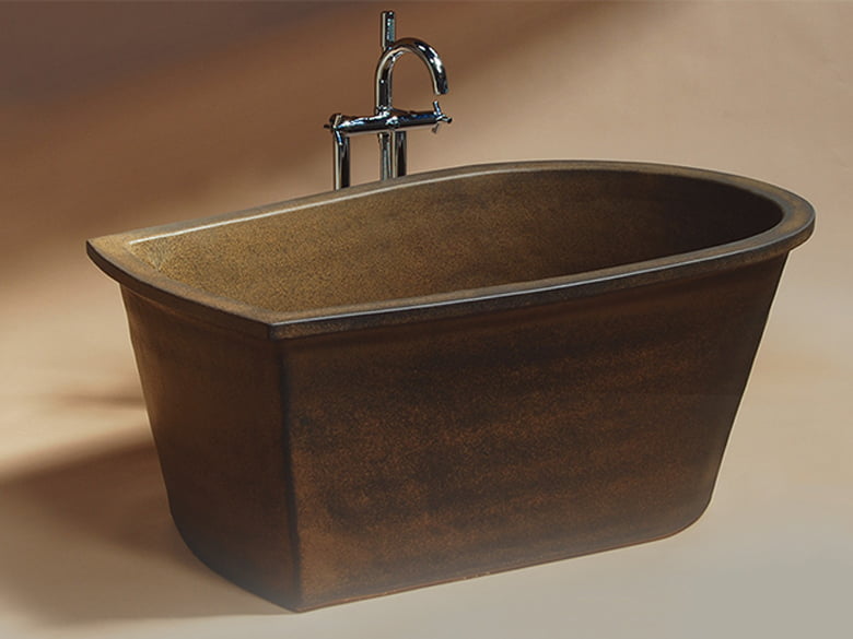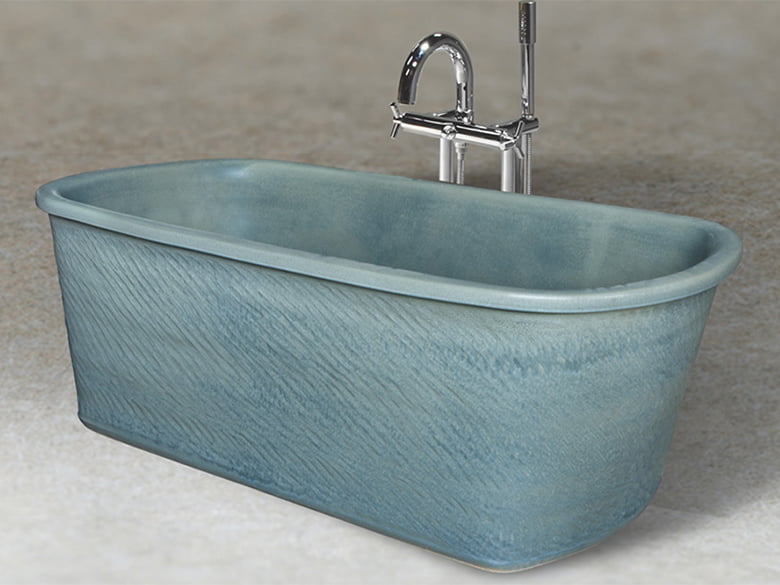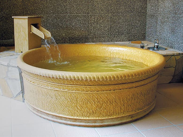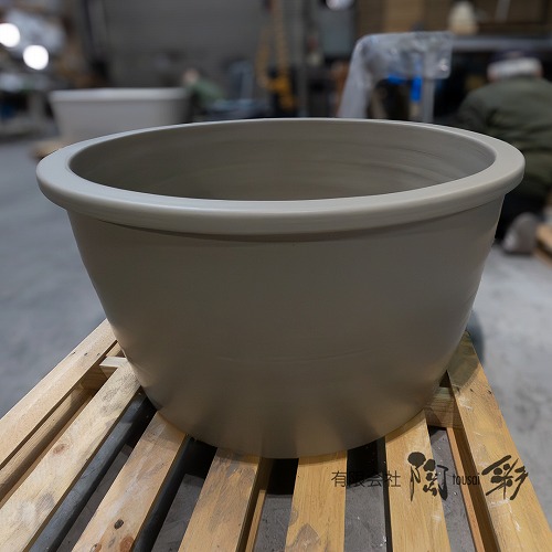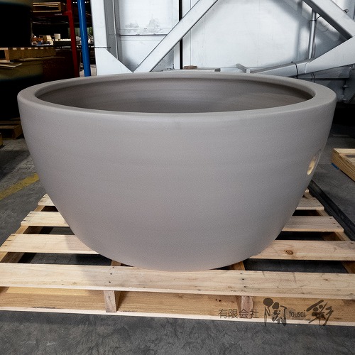 滋賀県の信楽町にある「有限会社陶彩」の陶器風呂カタログ。「HI-01(HI-02)」は、回転ロクロで成形する陶器浴槽で、コスト面で一番優れています。