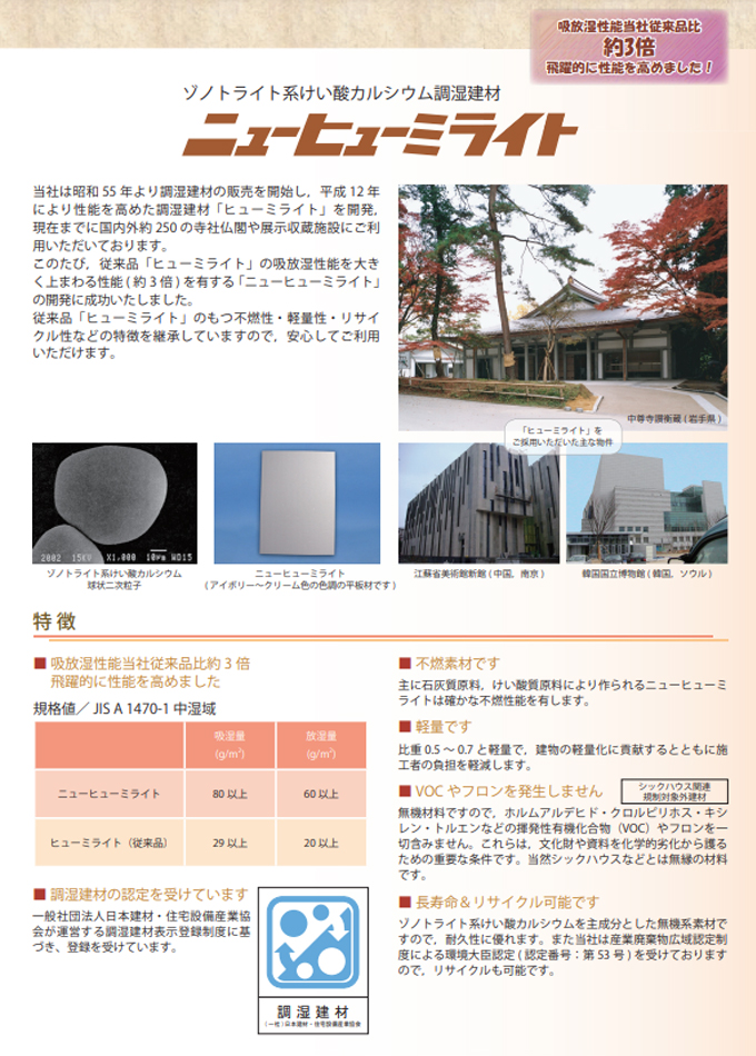 ゾノトライト系けい酸カルシウムボード バウビオシリーズ