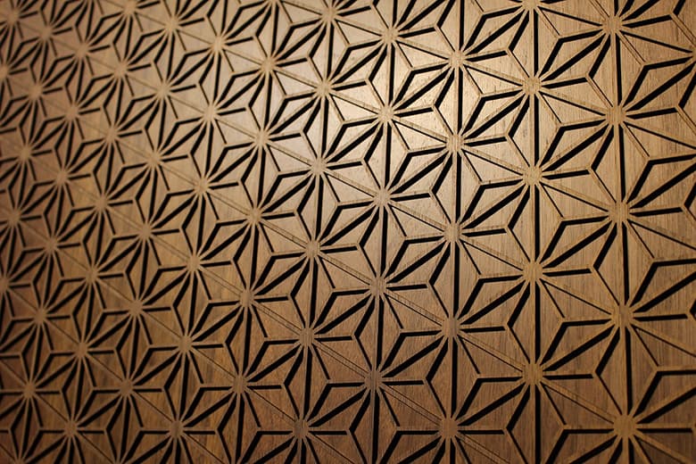 「 PIVOT(ピボット)」は、表面に0.2mmの薄さにスライスした天然木のツキ板を使用した立体デザインパネルです。銘木の中でも特に美しい木目を持つものだけをツキ板として使用。