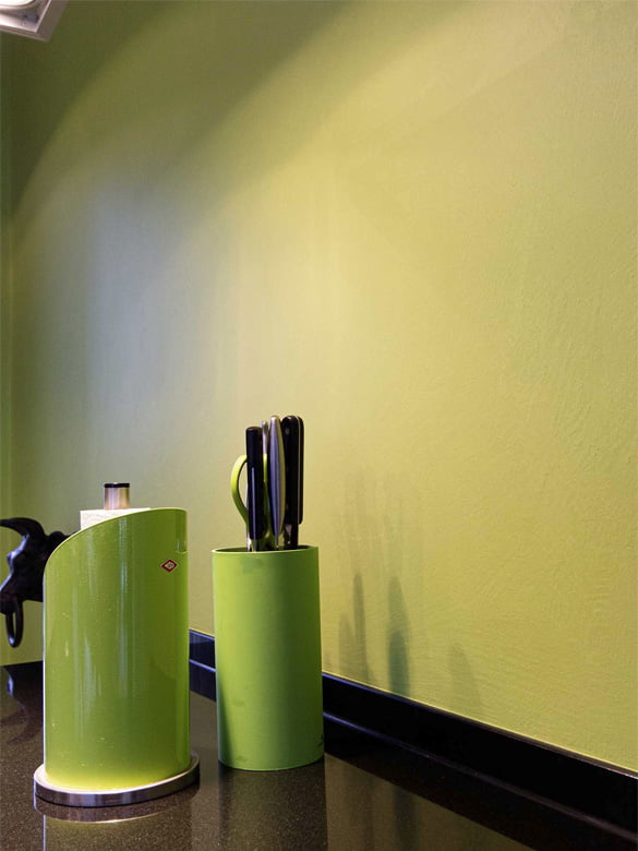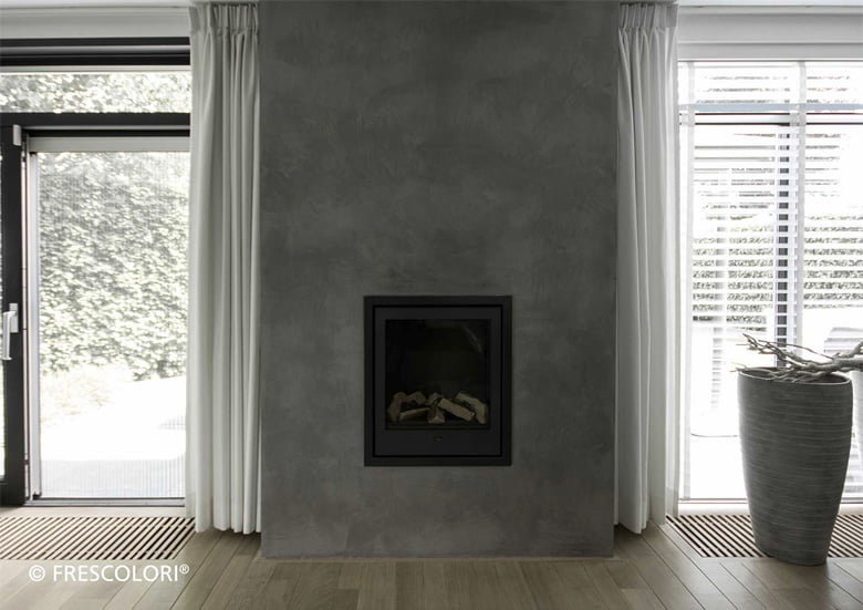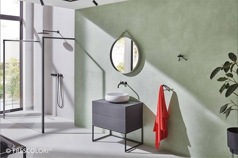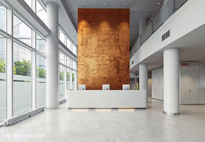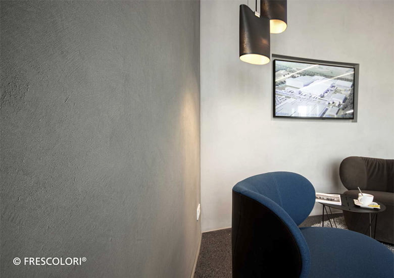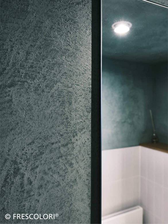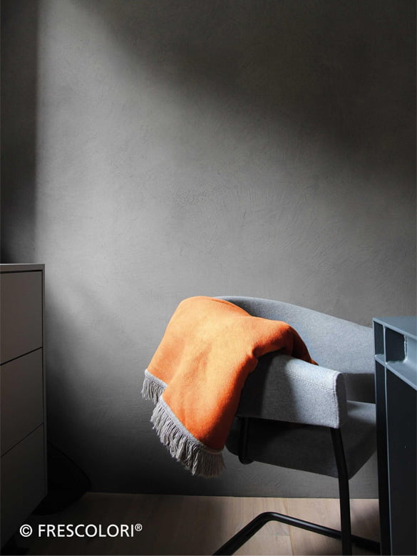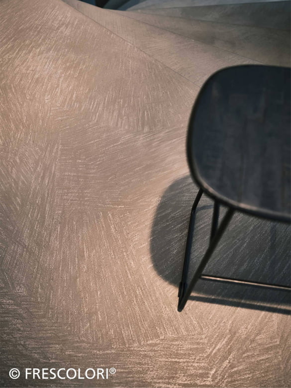 「 FRESCOLORI(フレスカラリ)」は、天然大理石と消石灰をベースに、自然原料を96%以上使用した左官仕上材です。天然石の持つ質感が空間に上質な風合いを加え、硬くも優しい手触りで快適な仕上がりに。