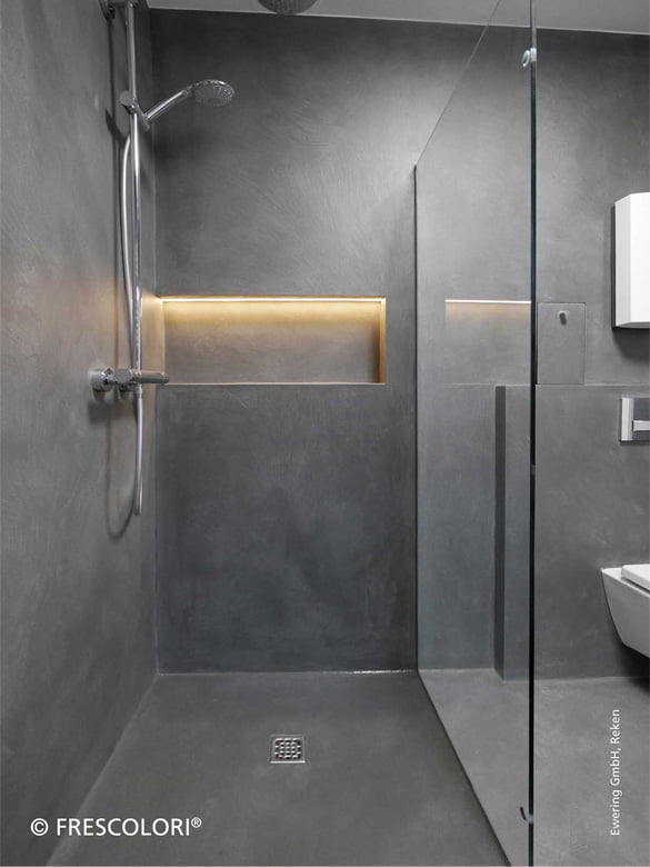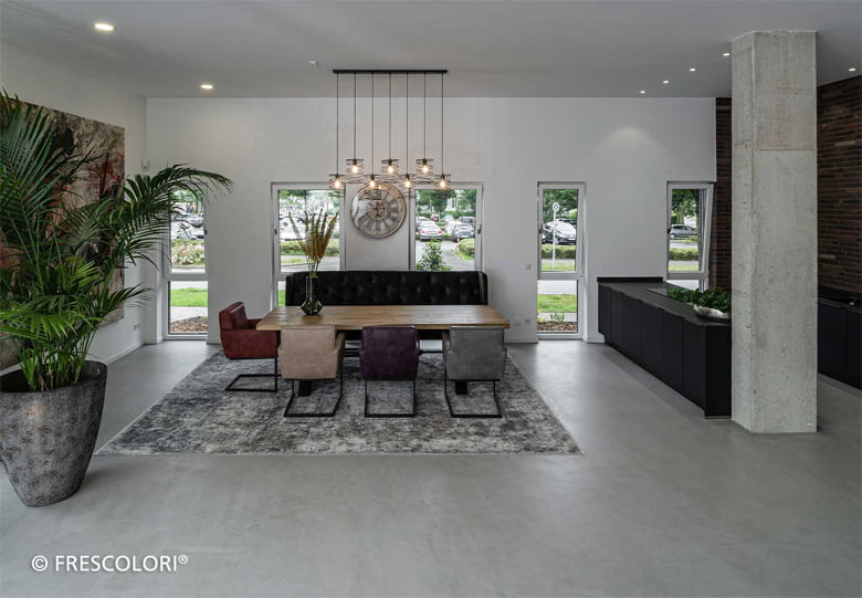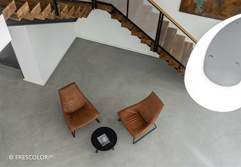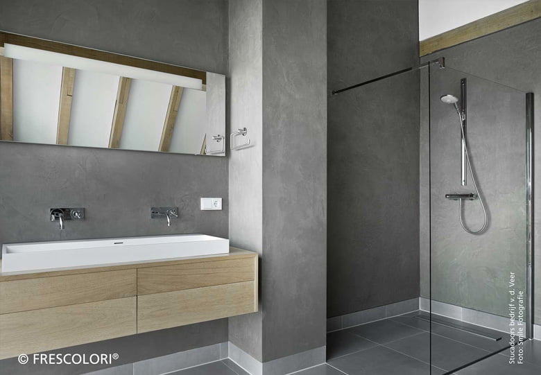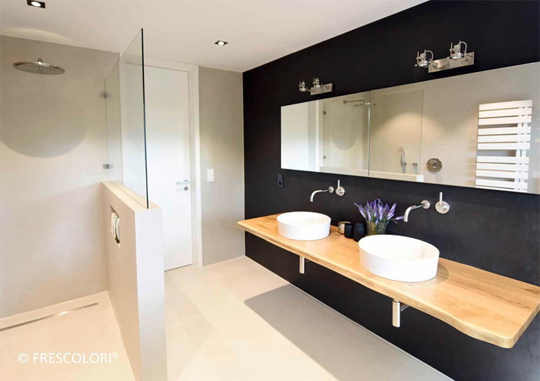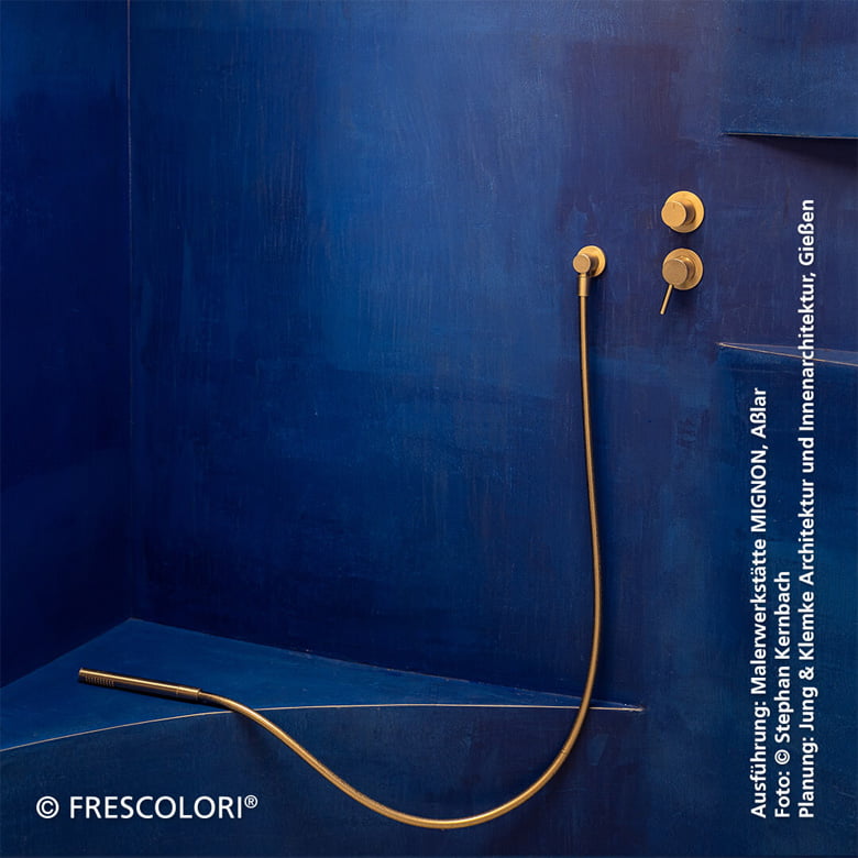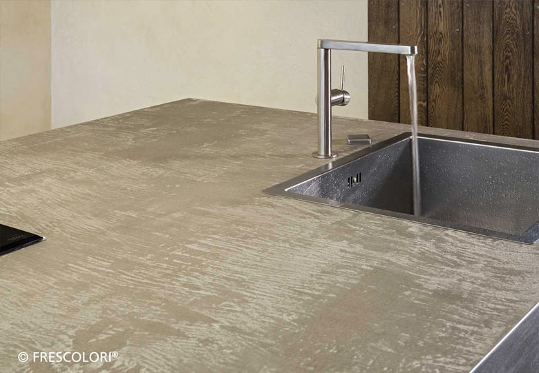 「 FRESCOLORI(フレスカラリ)」は、天然大理石と消石灰をベースに、自然原料を96%以上使用した左官仕上材です。天然石の持つ質感が空間に上質な風合いを加え、硬くも優しい手触りで快適な仕上がりに。