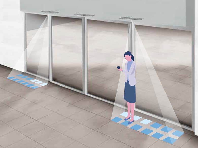 戸袋での挟まれや衝突を防止するために、戸袋エリアの人を検知するためのセンサー。起動用エリアに干渉することなく、戸袋エリア内への侵入を検出できます。