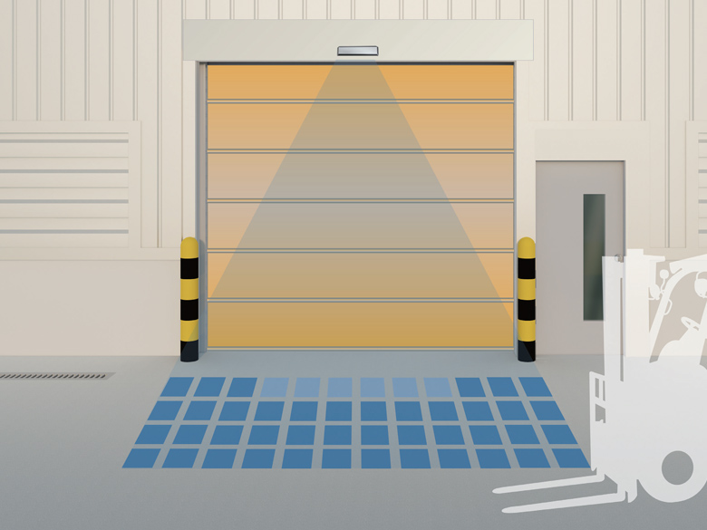 シャッター付近での立ち止まりに配慮した「静止体検出機能」を搭載。起動及び安全補助センサーとして使用できます。