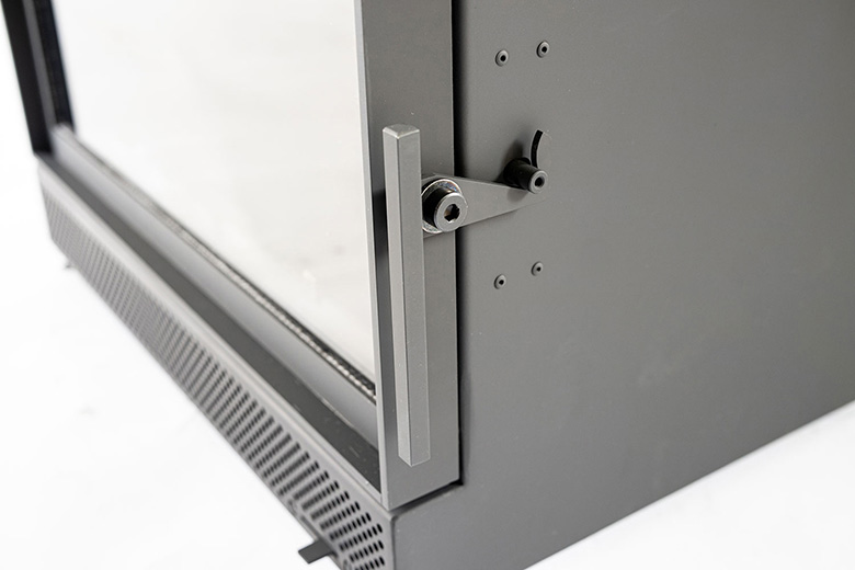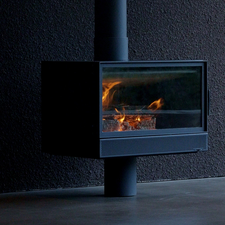 FIREGRAPHIXの最大の魅力である美しい炎をいつまでも眺められるように、「二次燃焼」と「エアカーテン」を搭載。炎を大画面で楽しむため、ガラス窓を覆うフレームは極限まで細くしました。