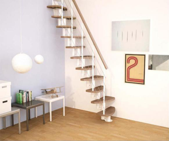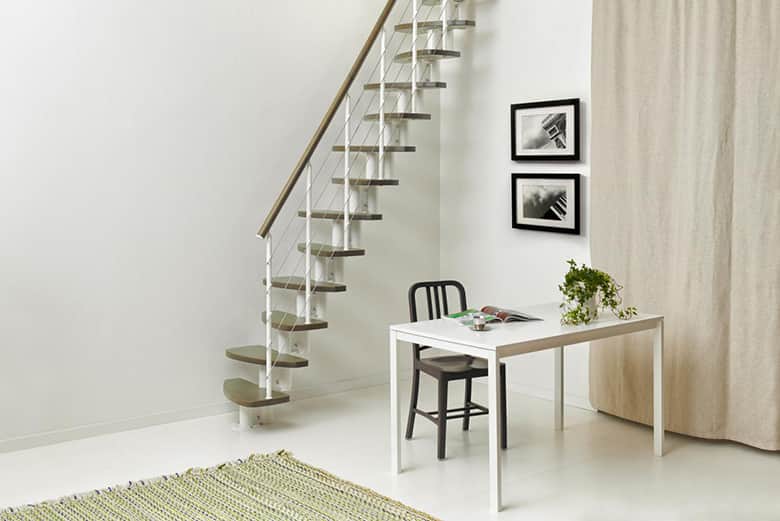「ZEN(ゼン)」は、現代の生活のニーズを満たすデザイン性と品質に優れた省スペース階段です。追加パーツの組合せで351cm(15段)の高さまで調整が可能。