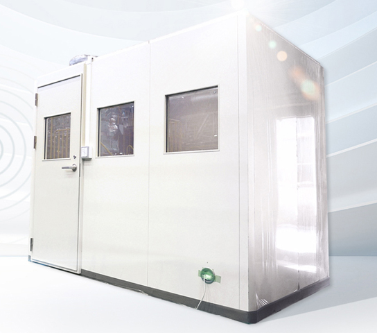 赤阪鐵工所の業務用防音室は、船用の技術を活かした「不燃性」+「パネル組立式」の防音室です。船舶用浮き床パネル「マーリエ・アイナ」の上に壁、天井を載せて防音室にしました。