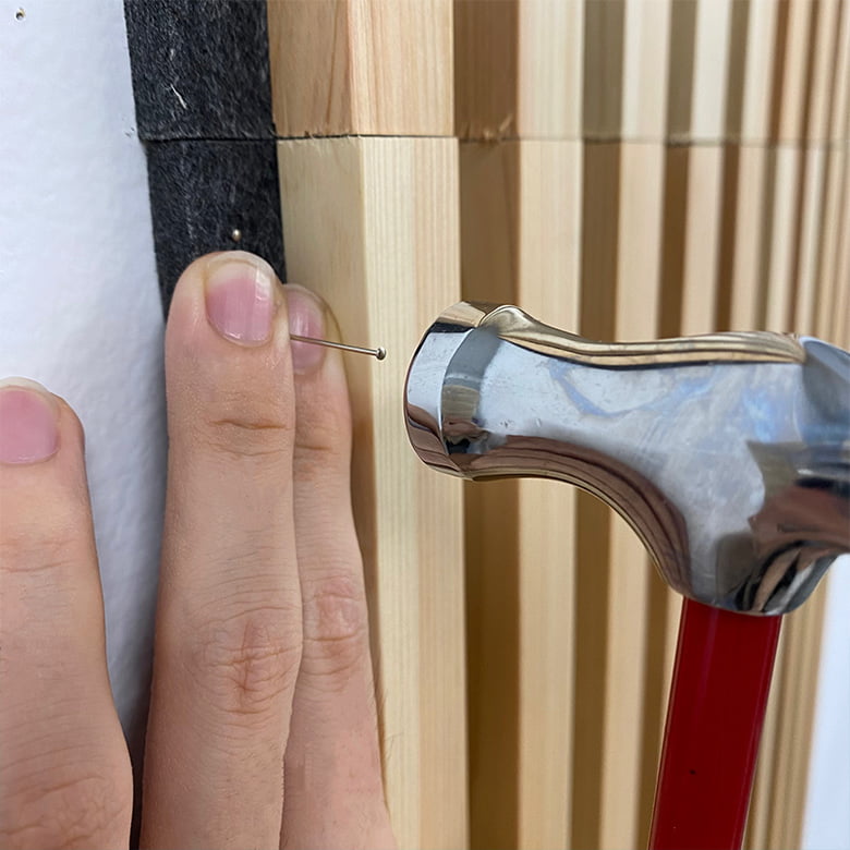 カッターやノコギリでカットでき、極細ピンで賃貸にも施工可能。