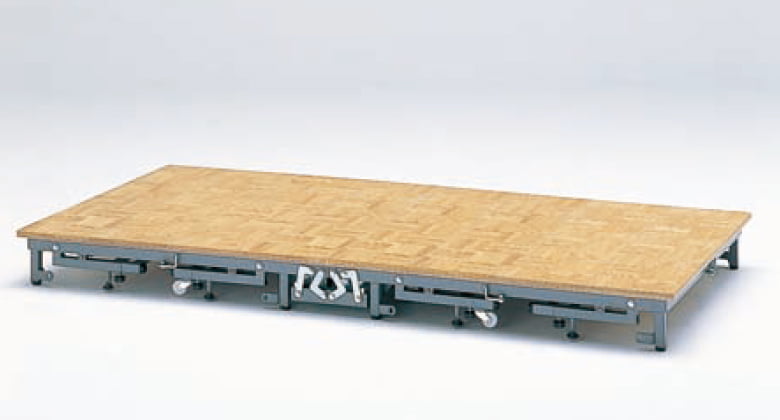 「ポータブルステージ ステップアップ」はキャスター付きなので、誰でも簡単に移動させることができます。普段は折りたためるため、収納の場所をとりません。