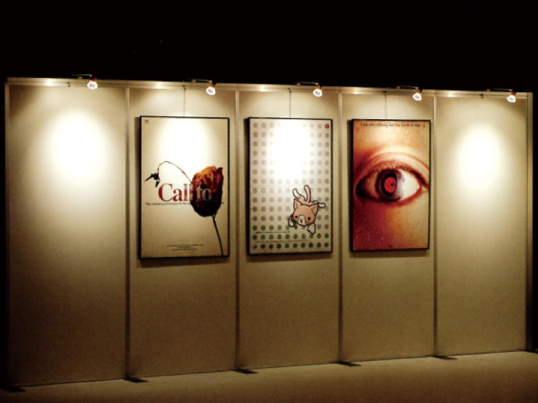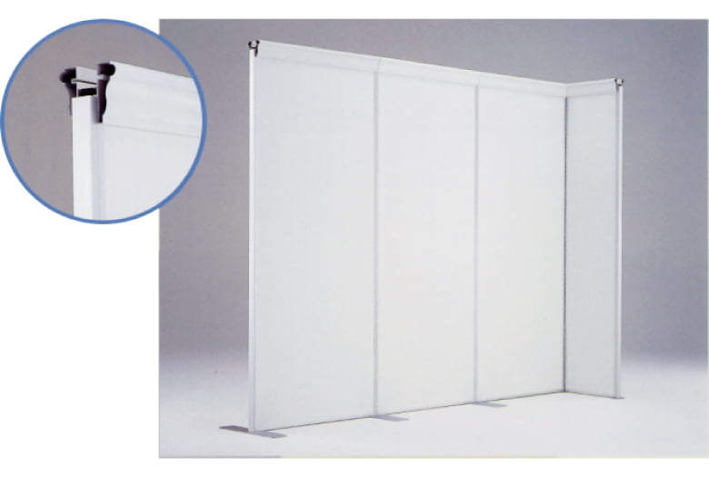 イベント会場のブース設営から、売り場、オフィスなど高い汎用性で人気のアルファシリーズに新シリーズ「EZ PANEL」が登場。パネルを囲むフレームがワンタッチで開閉可能。