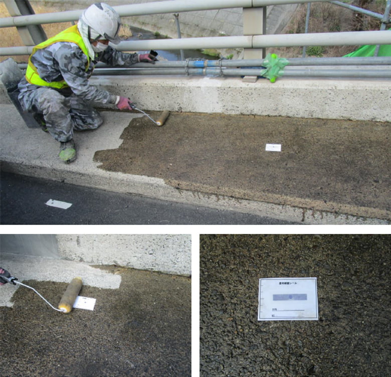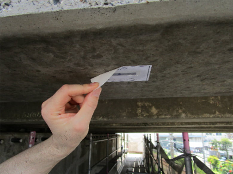 「シールdeチェッカー」は、リアクトライズの施工をアルカリ変色によって確認可能とし、同時に塗布量の管理も簡単に確認できるシールです。重量計測が不要となり、施工管理の負担軽減や工程効率の向上が期待できます。