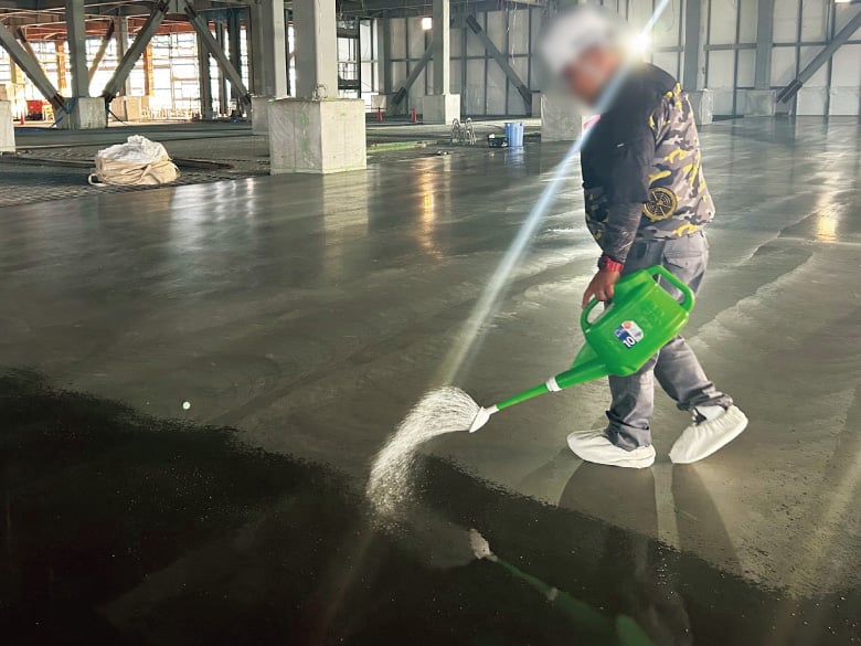 「クーラントC」は急速乾燥を抑え、作業時間を延長し、ひび割れを抑制します。直射日光が当たる場所や強風下など、悪条件下でも品質の高い施工が可能。