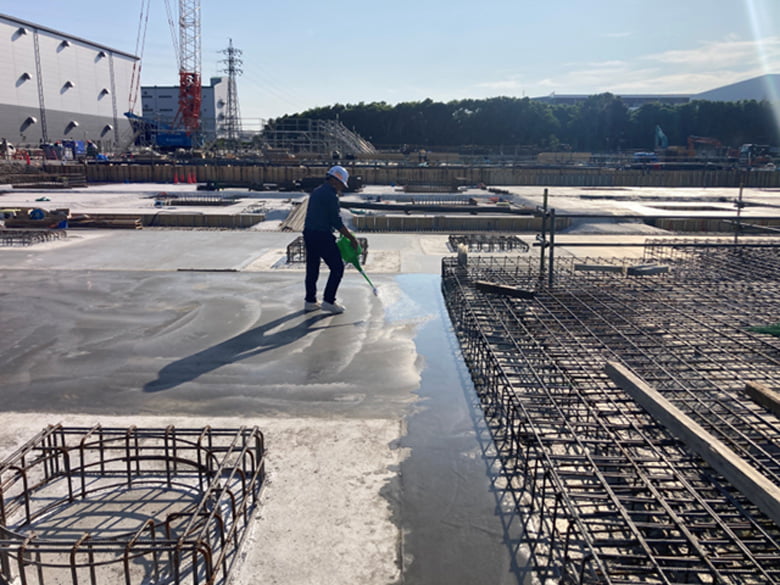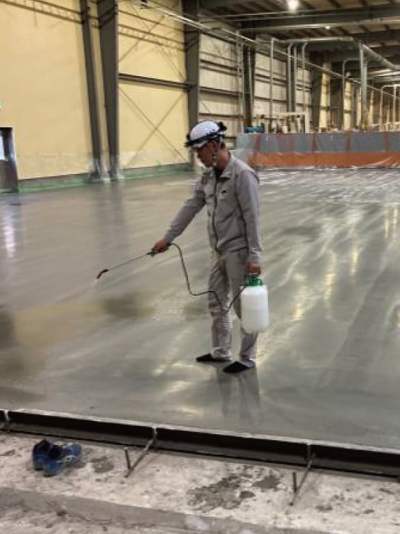 「ナノスラブコート」は保水性があり、凝結遅延効果が高いため、作業時間の延長が期待できます。直射日光や強風、高気温など厳しい環境下でも品質の高い施工が可能。