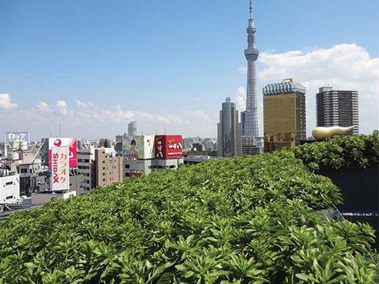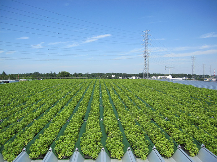 日本の自然環境に合う生命力の強い在来種「キリン草」を使用し、究極のローメンテナンスを実現した屋上緑化システムです。元々は落葉種だったキリン草ですが、長年の研究の結果「常緑キリン草」の開発に成功。在来種による年間を通じての屋上緑化が可能になりました。