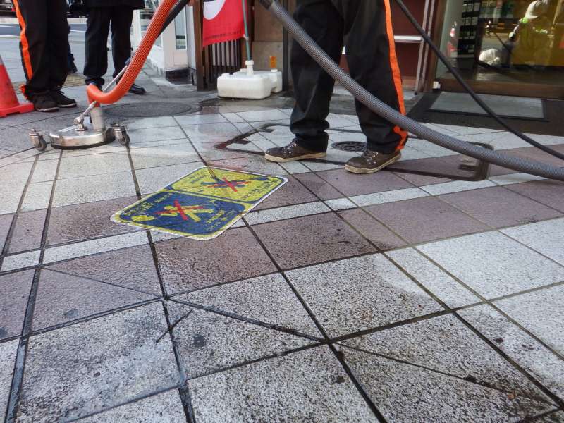 「よみがえり美人」は、高圧温水バキュームによる画期的で効果の優れた洗浄工法。特殊な高圧洗浄、吸水装置一体型洗浄システムを使用し、高圧水で洗浄しながら同時に洗浄汚水の回収処理が実施できます。
