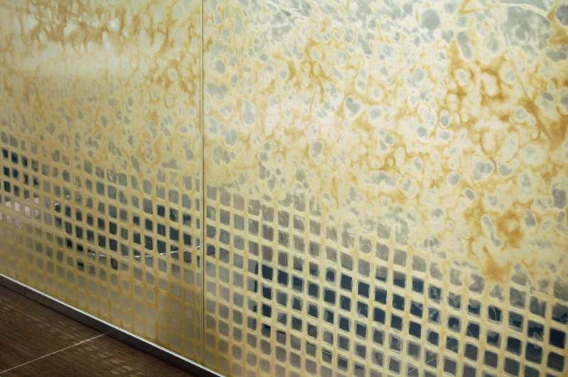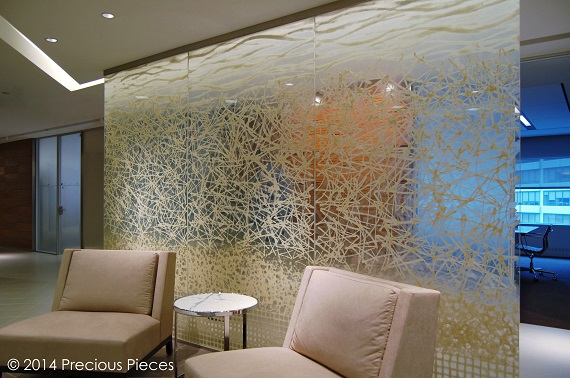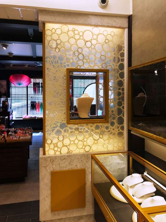 和紙のデザインがガラスと融合し、和紙の間から光が差し込みます。