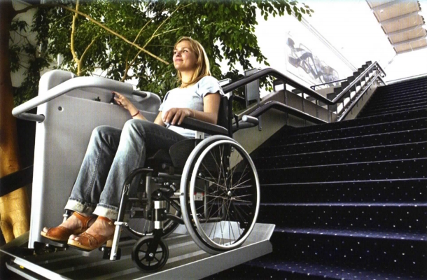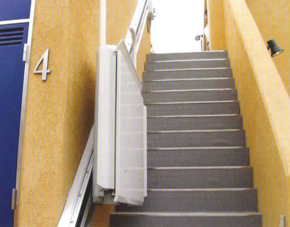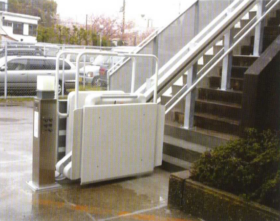 車いす用階段昇降「BCリフト」は、ラックピニオン式の遮光型段差解消機です。
