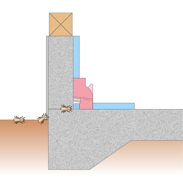 温かい基礎断熱部分がシロアリに危ない。シロアリは温かい部分を好みます。シロアリは温かい部分を好み、コンクリート基礎の打継部分のわずかなすき間から侵入します。