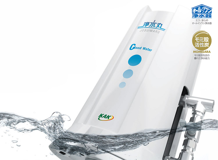 「浄水丸」は、水道水の不純物を除去して家中にクリーンな水を届ける浄水器です。