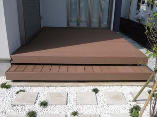 「アシストコンポジットデッキ/コンポジットウッドタイル」は、木の良いところとプラスチックの良いところを合わせ持つ