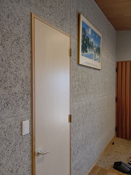 フネン木毛板は木質繊維の量を少なくし、新開発の混和剤を