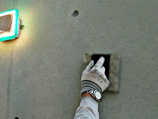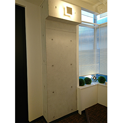 断熱セラミック塗材「ガイナ」を使用し、風合いを残したまま美しくコンクリートを再現するコンクリートアートシリーズです。宇宙開発で培われた最新技術を取り入れて誕生した特殊セラミック塗材で、夏の暑さや冬の寒さ、騒音や臭いなど住環境の悩みを解決する「ガイナ」をコンクリート打ち放し壁に塗装する場合に、色を調合しながらパットを調整して風合いを出して行きます。