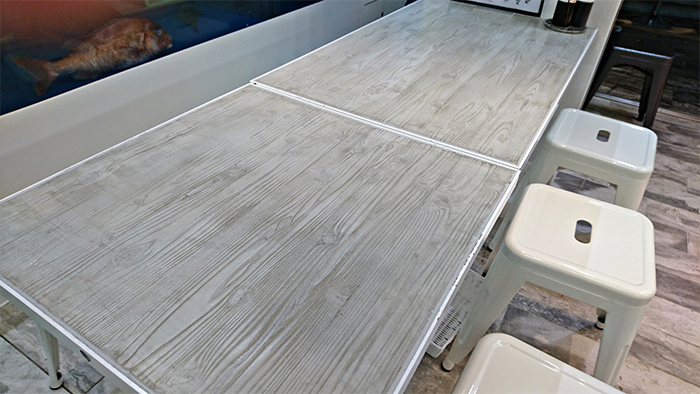 コンクリートアートシリーズ「杉板浮造り調デザイン」です。コンクリートモルタルで杉板柄を造り、平凡な壁を個性的に