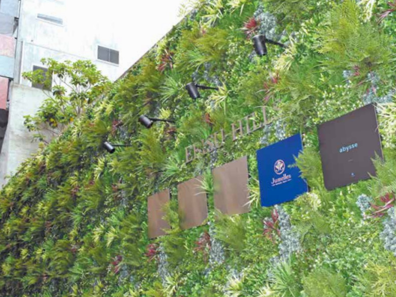 緑化パネルはデザイナーと園芸家が植物の配置をパターン化してデザインしたことで、パネルを設置するだけで美しく高品質な壁面緑化に仕上げることが可能です。UV加工で耐久性も高く、耐風圧性にも優れています。