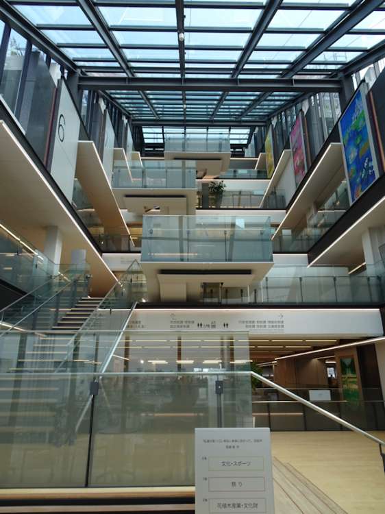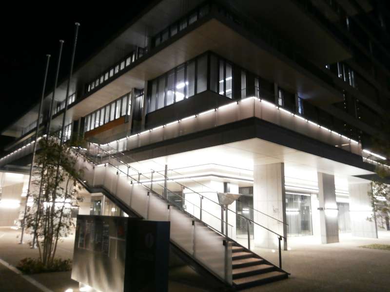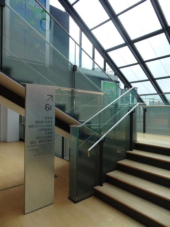 上下ルーバー付きのガラス手摺で、ルーバーから