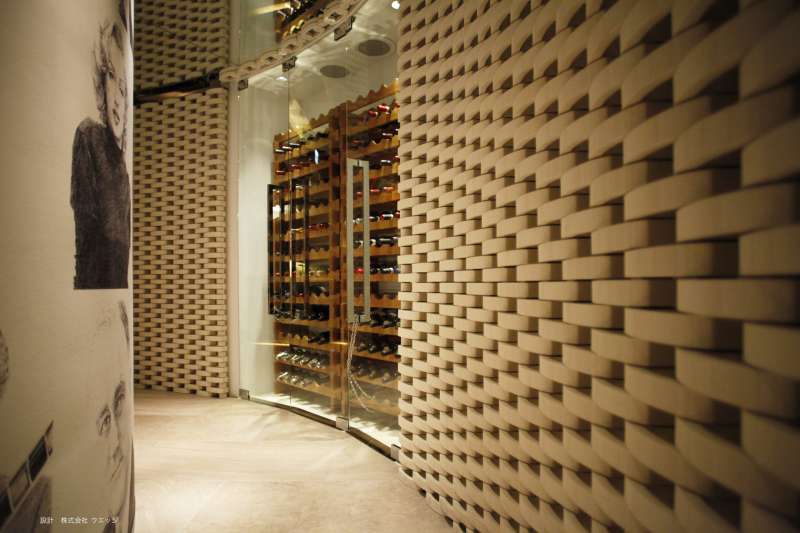 単一材料が数多く集まった面構成は、空間を仕切る光の壁の