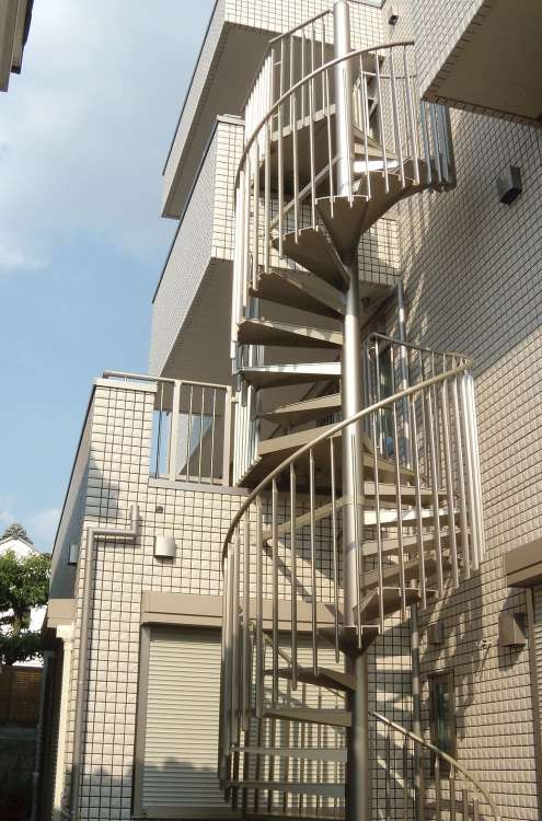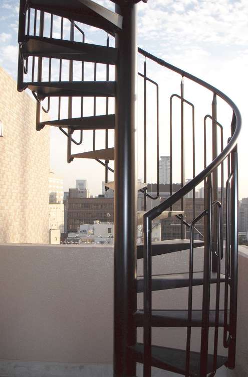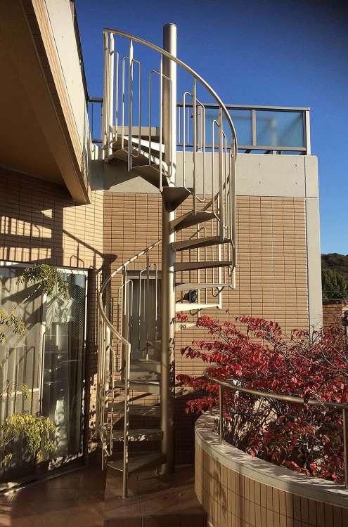 当社のKDスパイラルは、バルコニーから屋上、または庭やテラスなどの地上階からバルコニーへの昇降として最適な、
