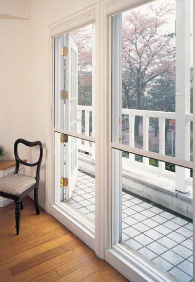 ロールアップ網戸の標準タイプ。スプリング式とコード式