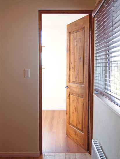 「Enaドア」は、表面に天然木を使用し、木の風合いをふんだんに感じることのできる天然木質内装ドアです。