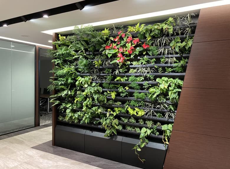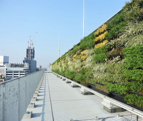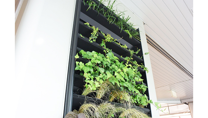 アルミスパンドレルを使用した自由な配置、水平ラインによる心地よい連続性と高いデザイン性が特徴の、壁面緑化システムです。壁面レイアウトの自由さを保ちつつ、独自の自動灌水システムにより、様々な植物の育成が可能です。