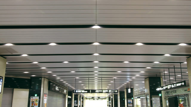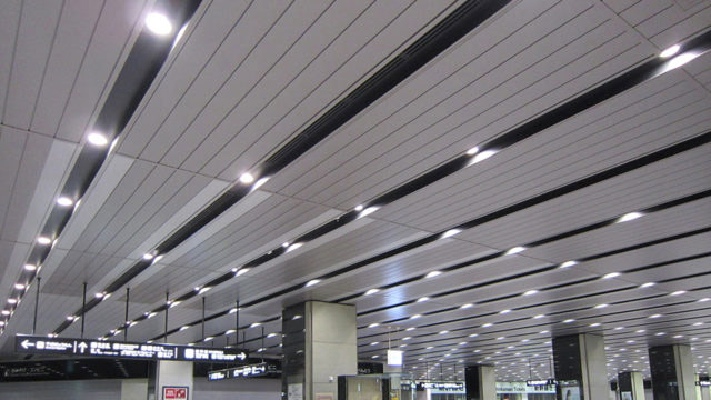 「流水システム天井」は、JR東日本と共同で開発した、漏水を天井裏で流すシステムです。天井面に施された様々なサイズや形の開口に対応できる流水見切と専用のガスケットを共同開発。二重天井が持つ別々の性能を一体化したことで、通行するお客様の快適性を制限する一因となってしまうという難点を解消しました。